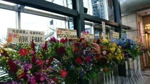 見てきたよ。 「何者」 お花もたくさん。 もちろん、あらんくん宛のものばかりじゃないけど、ドル誌5誌からそれぞれ大きなお花が。あと、「dex」さんと、「空飛ぶタイヤ」さんから。ちなみにれおくんには「炎の体育会TV」さんからも。 あらんくんはさ、声が…
